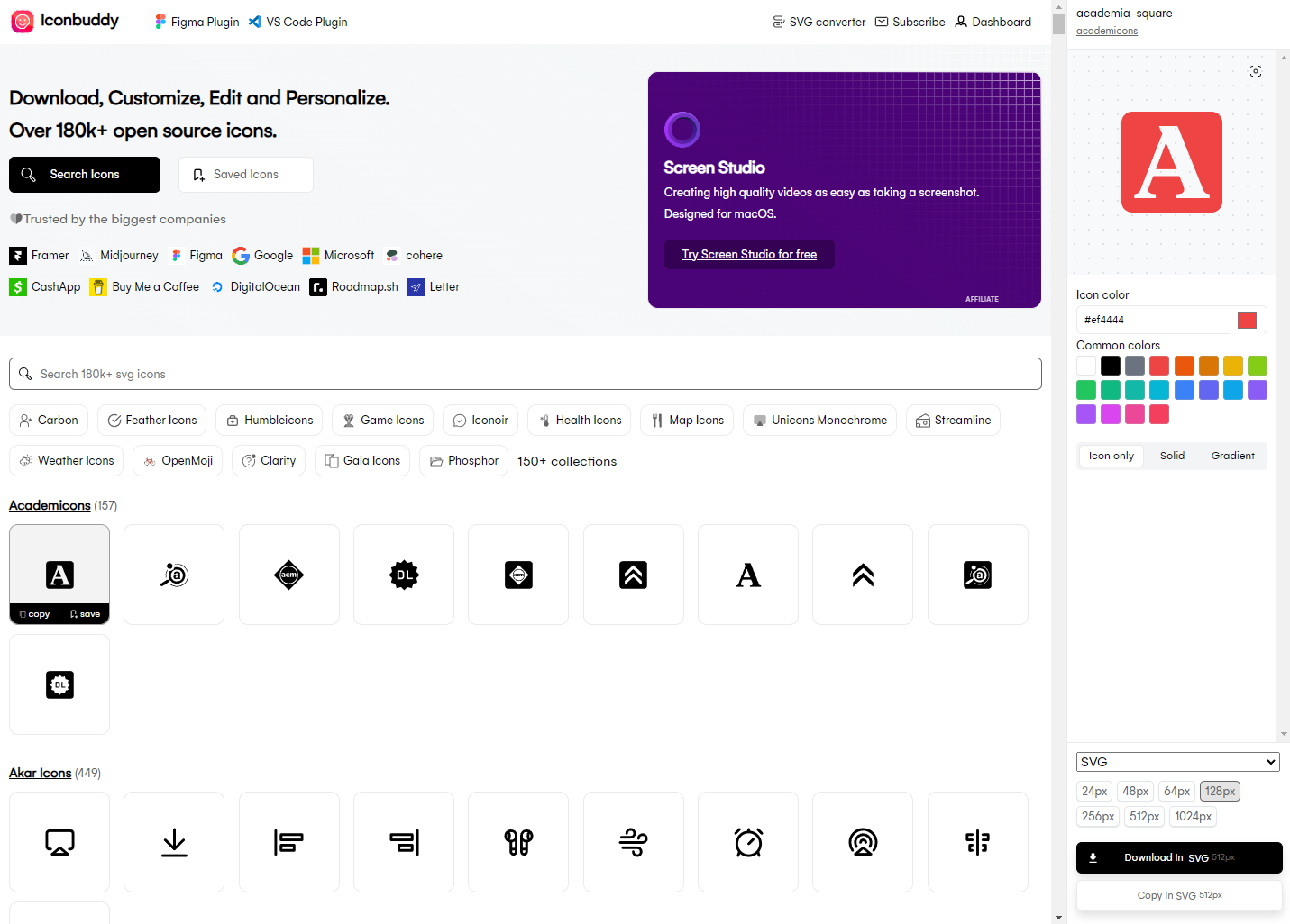 整合自 fluentui-system-icons、ionicons、ant-design-icons、material-design-icons、Font-Awesome tabler-icons 和 carbon 的 SVG Vue/React 组件。